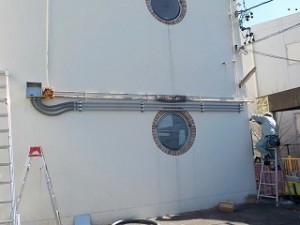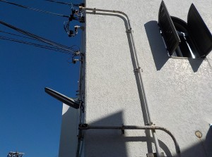 まず、建物外壁を鉄配管で施工させて頂きます。