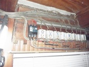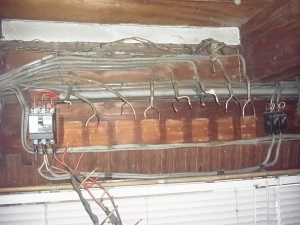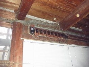 ↓取替前です。(ヒューズ式の古いものがズラッと並んでます。)